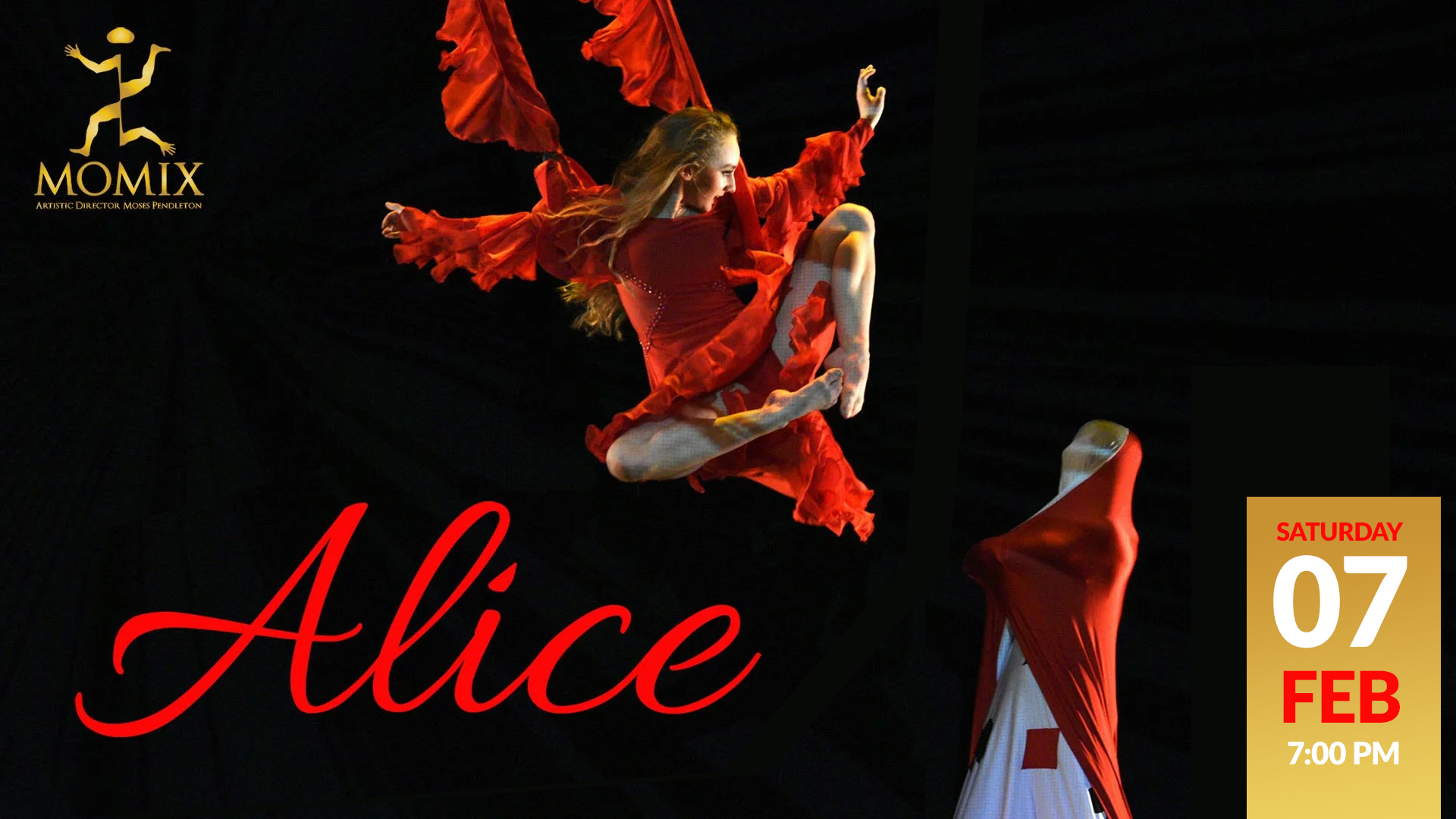 Seamlessly blending illusion, acrobatics, magic, and whimsy, MOMIX sends audiences flying down the rabbit hole in Moses Pendleton’s newest creation, ALICE, inspired by Lewis Carroll’s classic Alice in Wonderland. “I don’t intend to retell the whole Alice story” Pendleton says, “but to use it as a taking off point for invention.” Join this dazzling company… Read More »Momix: Alice
